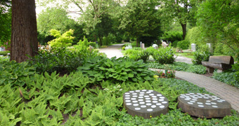 Im Ruhegarten wurde ein Hochbeet mit einer Natursteinmauer gestaltet. In dieser bepflanzten Fläche können Nutzungsrechte an Urnen-Wahlgrabstätten erworben werden. Schriftzüge auf der Natursteinmauer erinnern an die Verstorbenen.
