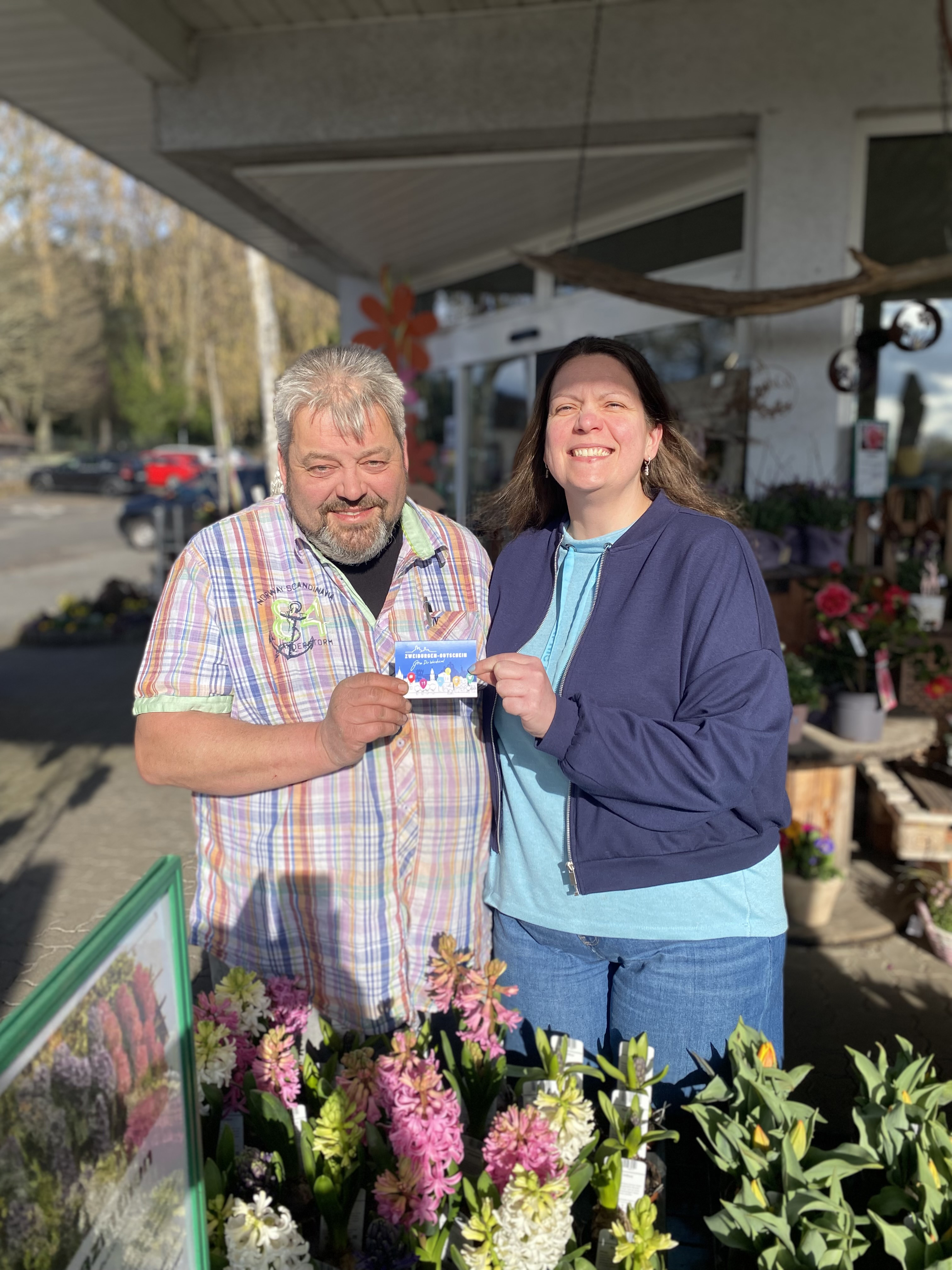 Das Weinheimer Blumenhaus nutzt den Zweiburgengutschein übrigens wie andere Betriebe und Weinheimer Firmen auch als Mitarbeiterbonus: Mitarbeitende erhalten die aufladbare Karte als steuerfreie Sachzuwendung und können damit für monatlich 50 Euro in über 50 Geschäften und Restaurants sowie für Dienstleistungen bezahlen.