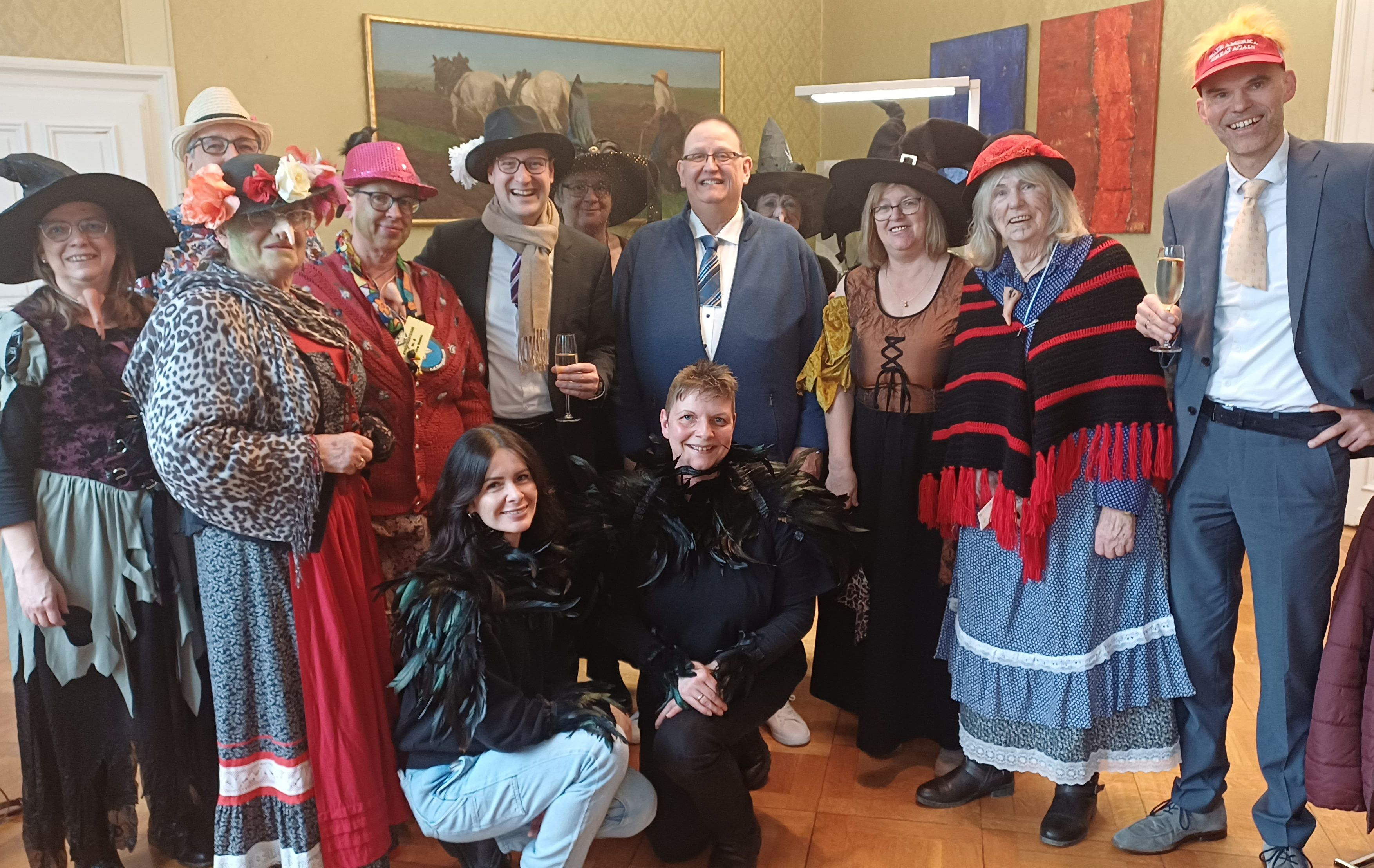 Bald-Landrat Just will offenbar auf seine Hutzeln aus Sulzbach auch im neuen Amt nicht verzichten und lud die Besucherinnen für Altweiberfastnacht im nächsten Jahr aufs Heidelberger Landratsamt ein. Nun wollen sie sich beraten, ob sie auch wirklich ins „Heidelberger Ausland“ reisen…