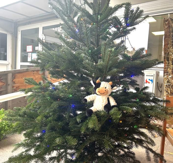 Ein echter Hingucker war der hell erleuchtete Weihnachtsbaum, in dessen Zweigen das Kita-Maskottchen thronte, eine kleine Kuh, die scheinbar mit einem verschmitzten Lächeln über das bunte Treiben wachte.