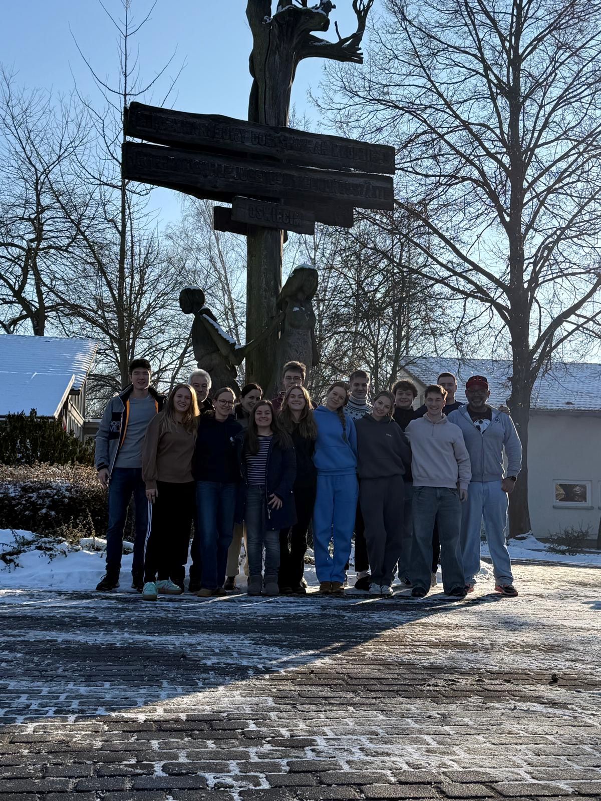 Die Anreise erfolgte gemeinsam mit dem Zug von Weinheim in die polnische Stadt Oświęcim – ein bewusster Auftakt für eine intensive Woche des Erinnerns, Lernens und der Begegnung. Vor Ort traf die Gruppe auf Schülerinnen und Schüler aus den beiden Partnerländern und wuchs innerhalb kürzester Zeit zu einer internationalen Gemeinschaft zusammen.